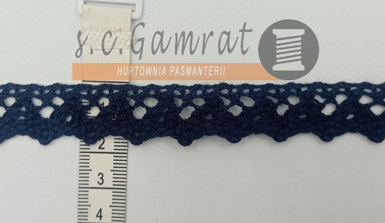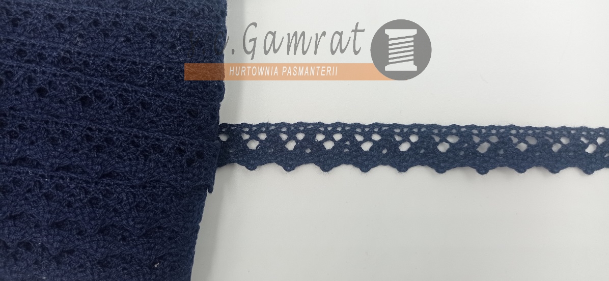 Koronka bawełniana - granat. Zakup min. 25m ( 1op.). Szerokość ok.15mm.