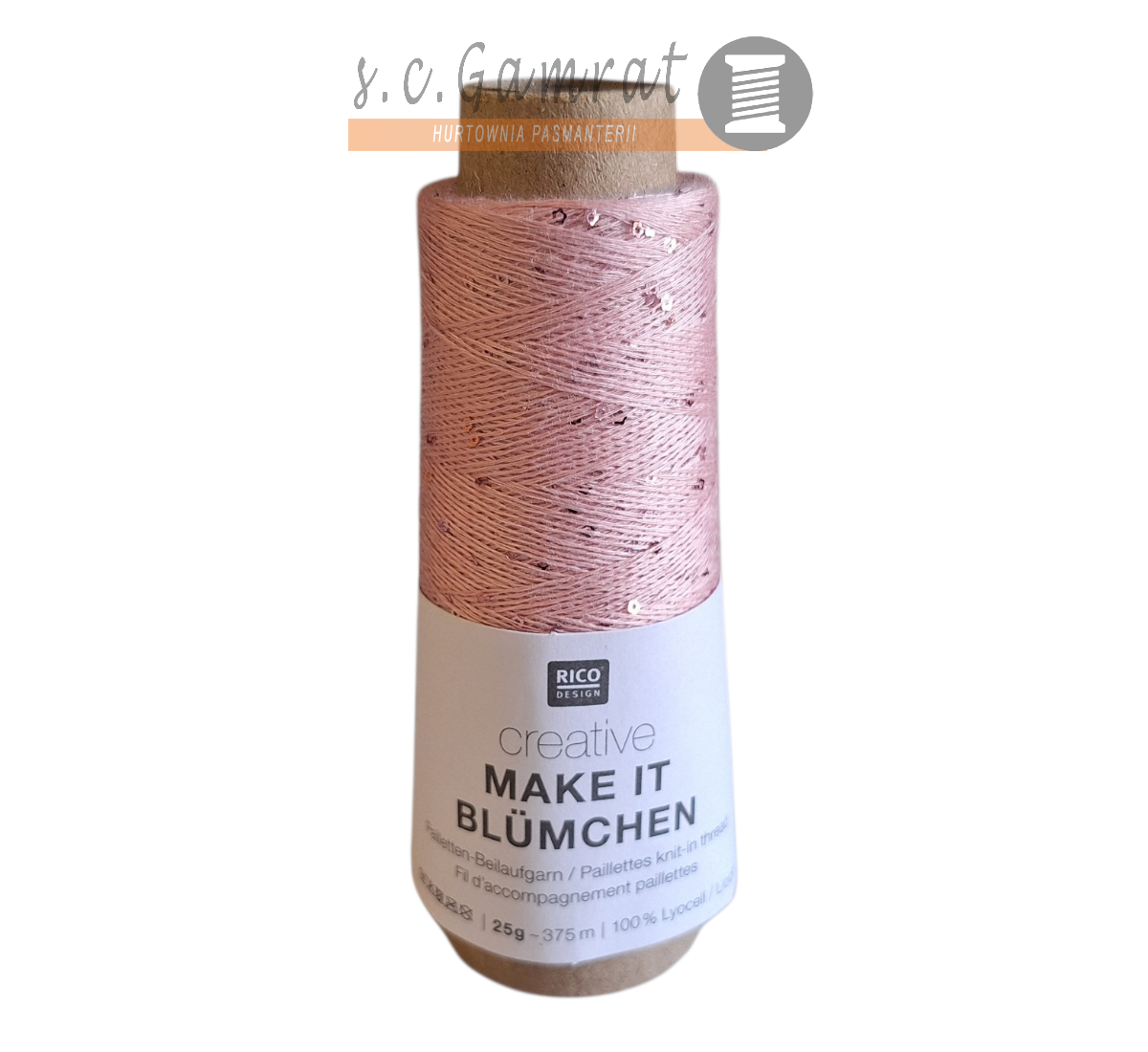 Materiał: nić 100% Lyocell, cekiny 100% poliester