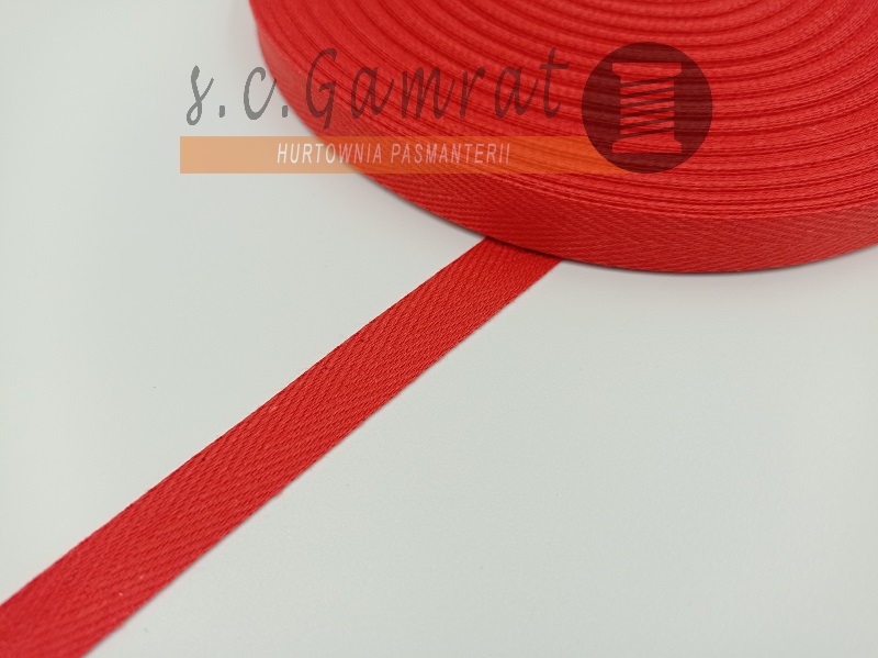 Taśma bawełniana 15mm - CZERWONY (op.50m)